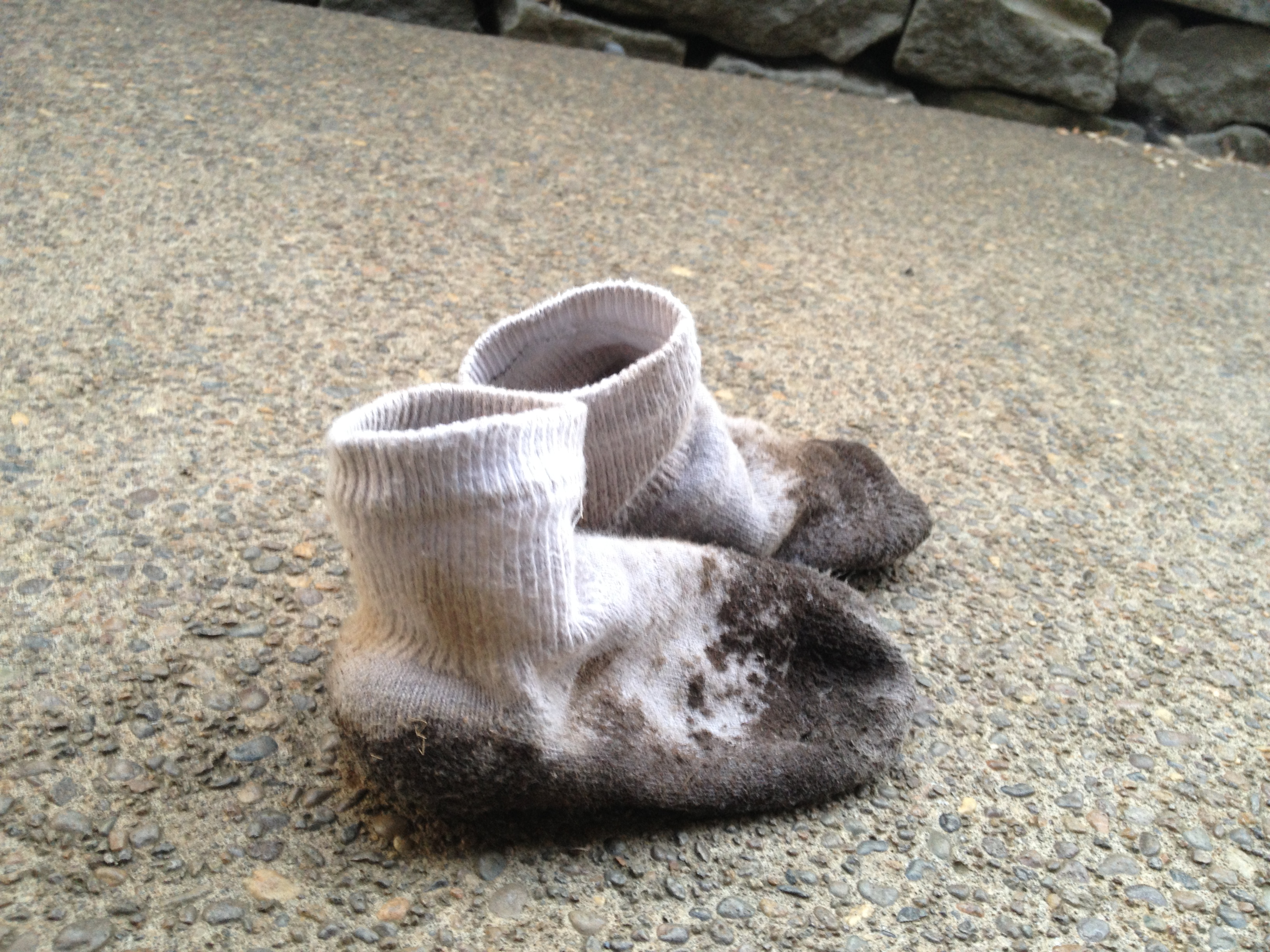 He then proceeded to dip the filthy sock in the water and scrub at it with the decanter brush. All very reasonable, and completely devoid of soap, but points for trying, right? Next, he handed ME the filthy, muddy sock.