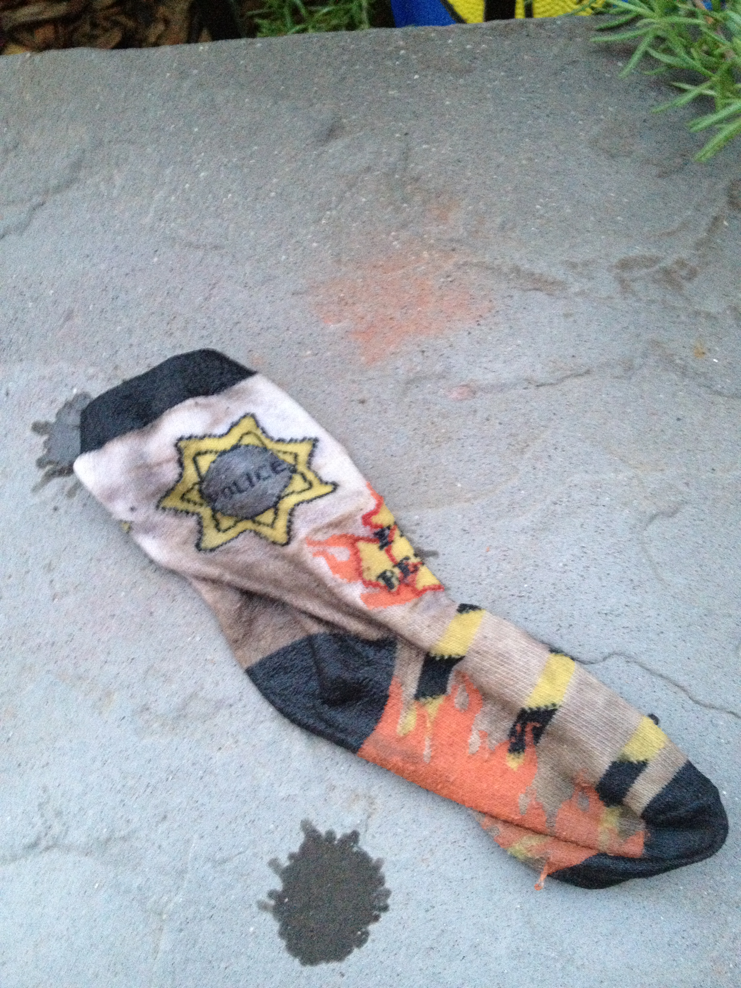 I followed Thing One and his dripping sock down the stairs to the patio. There he had this: