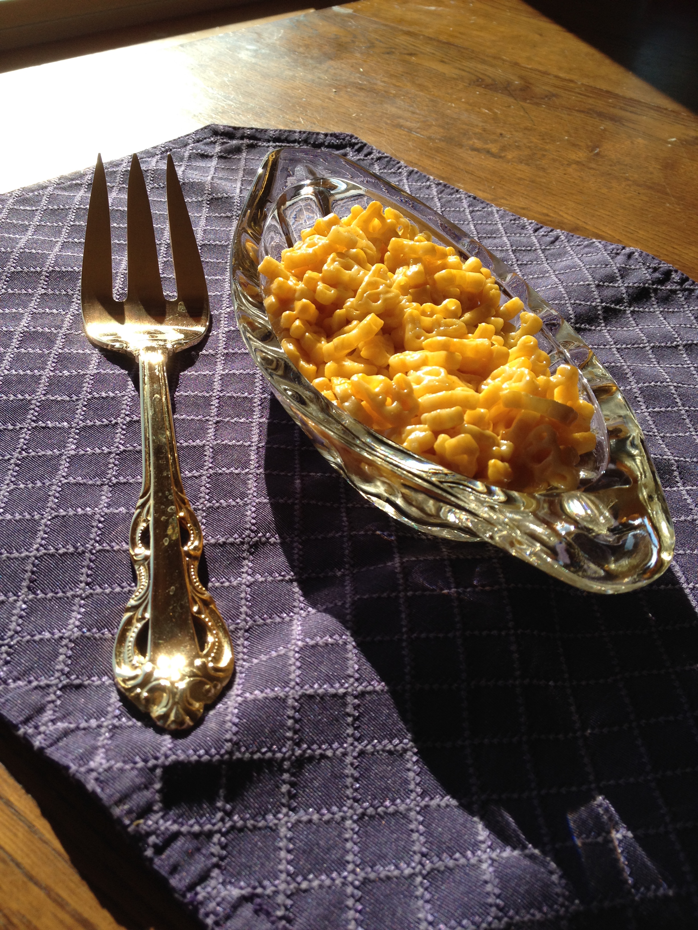 - Make it from a recipe, and not from a box. This is going to be really great, kids. I am going to spend all afternoon making macaroni and cheese for dinner. I am going to use four different kinds of cheese. I am going to make a loaf of bread, and then make bread crumbs out of HOMEMADE bread. I am going to use corkscrew pasta in order to pick up as much of the delicious cheese sauce as possible. I am going to bake it in the oven for an hour, then broil those magical bread crumbs and a sprinkle of cheese on top until it looks like it belongs in a magazine. And you are going to refuse to eat it. In fact, you probably won’t even try it, because the noodles are the wrong shape, there is cheese on it, and there is no box in sight.