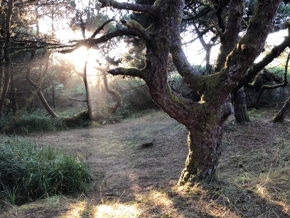 The sun was moving to a position where my deception would be easier to see through. I realized he needed something tangible to take away in his pocket. I scampered down the saplings and picked up a smooth, cream-colored stone. As I climbed back up, I shook the sapling frame a bit more than necessary, and made the cornsilk hair lift around the empty place where the face should have been, the rising sun striking the strands to make a corona of shining light. The boy stood up in reflex, his mouth open wide in astonishment. Light tricks!